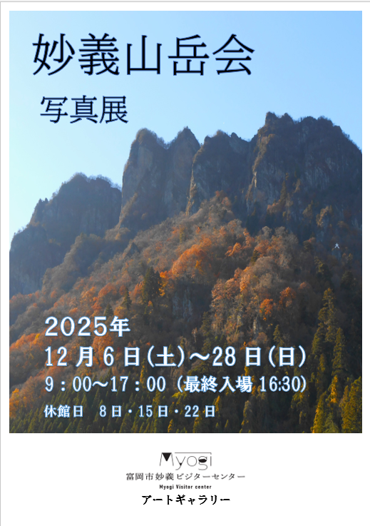 富岡市妙義ビジターセンター 「妙義山岳会 写真展 」(12月6日~12月28日)