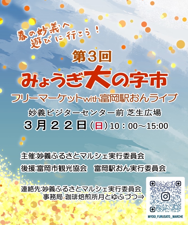 - 【3月22日】第3回みょうぎ大の字市 フリーマーケットwith富岡駅おんライブ