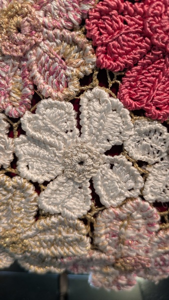 細いシルク糸をかぎ針で編みました。
